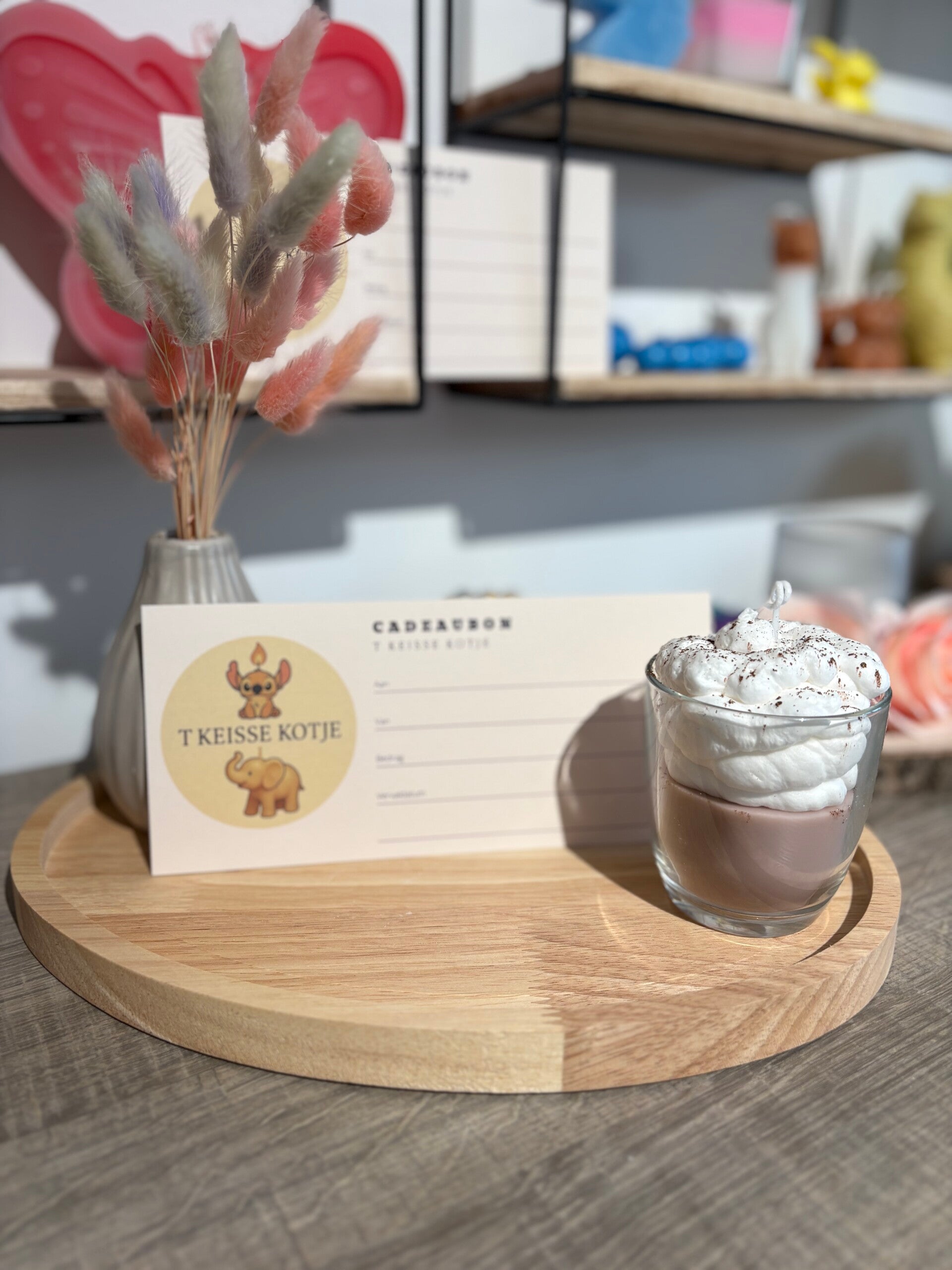 Deze cadeaubon is te gebruiken in T Keisse Kotje (op afspraak) en is geldig voor het volledige assortiment: kaarsen, decoratie en geschenksets.